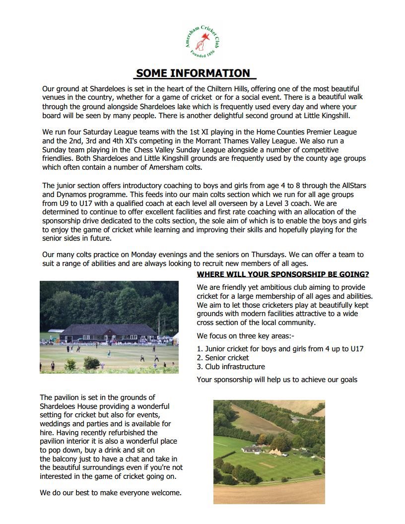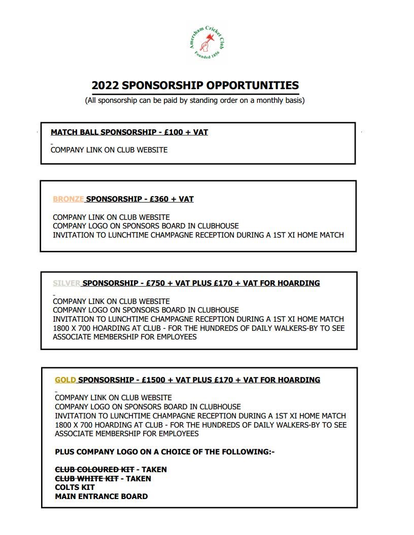 AMERSHAM CC - Sponsorship